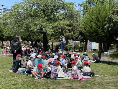 歩き遠足では、ペア学年で楽しく遊びました。保護者の皆様、お弁当等準備へのご協力、ありがとうございました。