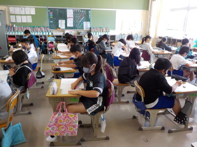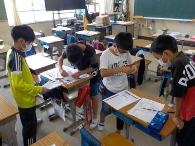 火曜日から1年生の視力検査を行っています。今日は2組の番です。また、5年生は、学力状況調査を実施しました。集中して頑張る姿が見られました。