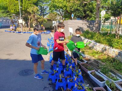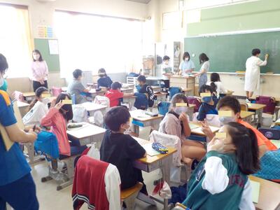5年生は、昨日から調理実習を行っています。ジャガイモと小松菜をゆでて味付けをしました。校長室にも届けに来てくれた子どもたちがいました。嬉しくて、とてもおいしく感じました。