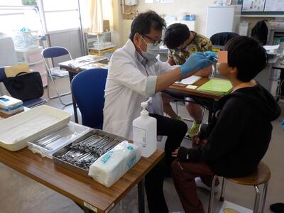 1年生の授業の様子と、5年生の聴力検査です。今年度も少しずつですが、学校の様子を伝えていきたいと思います。