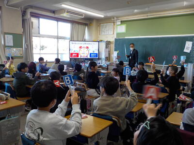 日本は、30年間で震度7以上が7回も起こっていることを知り、場面ごとに2択クイズをしながら、学びしました。