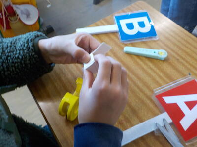 また、紙でホイッスルを作りました。紙でホイッスルが作れるとは驚きです。