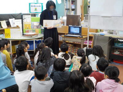 福栄中学校の図書委員さんが読み聞かせをしてくれている動画を図書の時間に視聴しています。