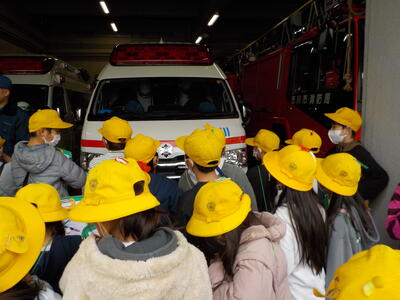 南消防署に見学に行きました。救急車やはしご車,水槽車,大型化学高所放水車などの車両の説明を聞いたり,実際のレスキューの実演を見せていただいたり,とても実りある学習となりました。最後には,消防士の仕事として,助ける命も大事だけれど,もちろん自分自身の命も大事。そのために,様々な訓練をして,仕事に励んでいることを教えていただきました。消防署の皆さん,これからも町の安全のためによろしくお願いします。
