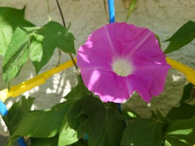 1年生が栽培しているアサガオや、2年生が栽培しているトマトが育ってきました。アサガオは少しづつ花が咲き始めました。トマトは色が赤くなり始めました。