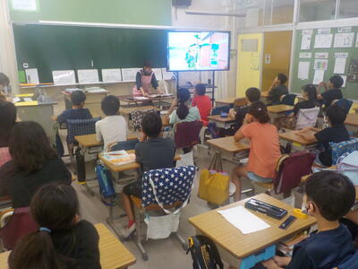 今日は朝の時間、4年生を対象に「かるがもサークル」の方々による読み聞かせを行いました。