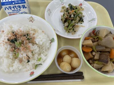 ひじきに粉チーズを混ぜるととてもおいしくなりました。6年1組の皆さん、野菜たっぷりでユニークなネーミングの献立をありがとうございました。