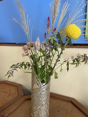 今日は中秋の名月(十五夜)です。まだまだ暑いですが、給食や玄関のお花から秋を感じることができました。