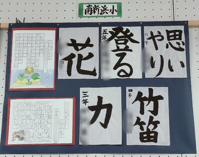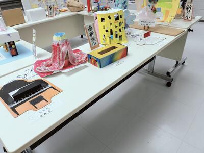 図工の絵や立体作品、書写、技術科・家庭科の作品が展示されました。