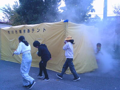 その後4年生は煙中体験、6年生は起震車体験を行いました。