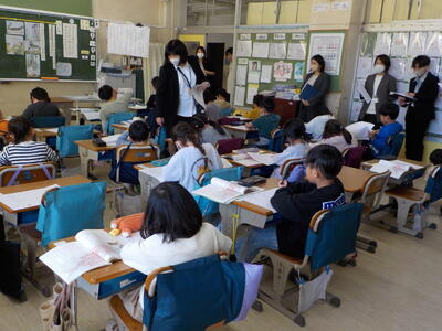 本日は低学年の授業研修会でしたので、幼保小連携事業のひとつとして近隣の幼稚園や保育園の先生方にも参観していただきました。