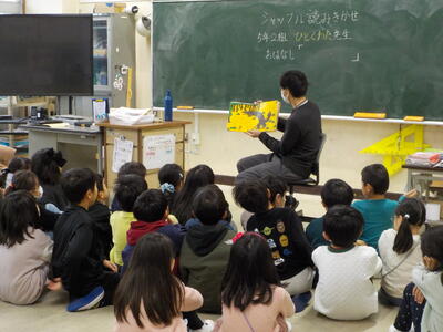 担任の先生ではない先生からの読み聞かせは新鮮で、どのクラスも食い入るように見ていました。