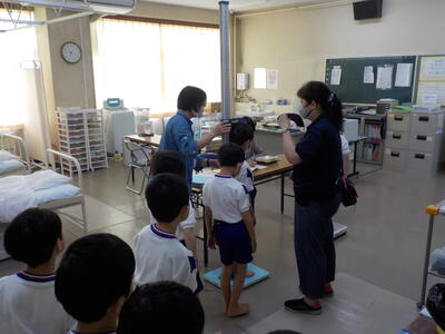 午前中、子ども達の食べる機能を調べて生活をみつめるために、口腔検診を実施しました。子どもたちは興味深く検査に臨むことができました。