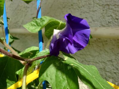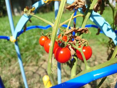 1年生が栽培しているアサガオや、2年生が栽培しているトマトが育ってきました。アサガオは少しづつ花が咲き始めました。トマトは色が赤くなり始めました。