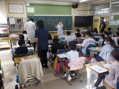 3年生は、ヤクルトのふれあいづくり推進課の方をお招きして「おなか元気教室」を実施しました。おなかの仕組み、消化の仕組みについて勉強しました。
