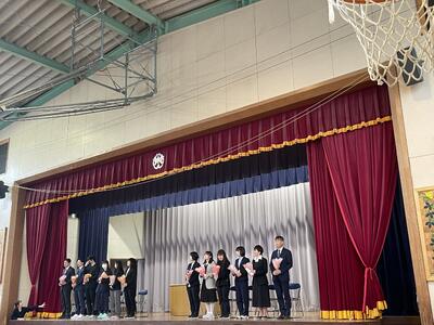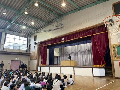 修了式では、校長先生や生徒指導の先生のお話を聞く姿に成長した姿が見られました。離任式では、5年生の代表児童が感謝の気持ちを伝えていました。転退職される先生方、これまで南新浜小学校のためにご尽力いただきありがとうございました。これからのご活躍をお祈りしています。