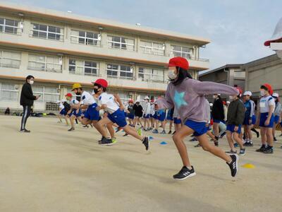 1・2校時、一般社団法人「SPORTS EXPRESS JAPAN」の3人のコーチをお招きして、「走り方」の学習をしました。全てのスポーツに共通する走る楽しさ、スプリントのコツなどを体験することができました。