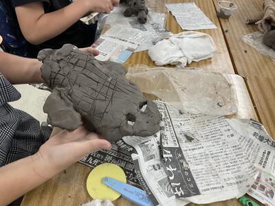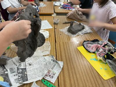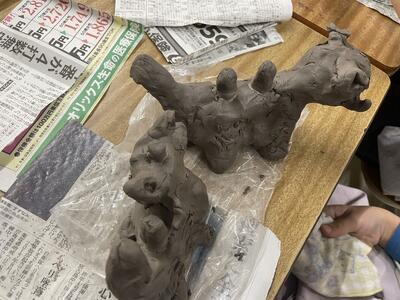講師の方をお招きし、陶芸教室を開催しました。粘土の感触を楽しみながら、ひねりだしたりくっつけたりして、思い思いの作品をつくっていました。今はこげ茶色ですが、自分で選んだ色になって焼きあがります。作品が届くのが楽しみですね。講師の先生、ご指導いただきましてありがとうございました。