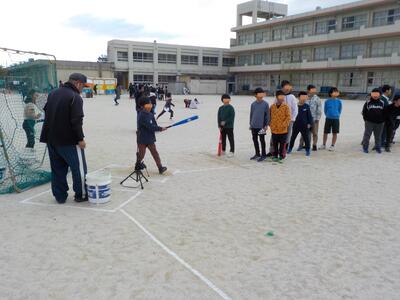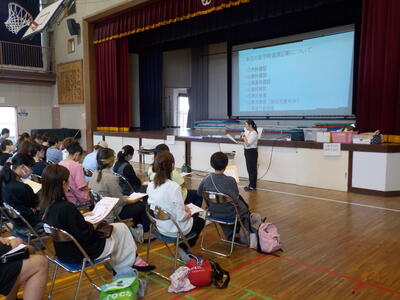 防災教育の一環で、学校の防災倉庫の中にあるものについて学習をしました。市の防災課の方が詳しく丁寧に説明してくださいました。