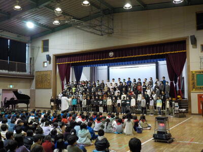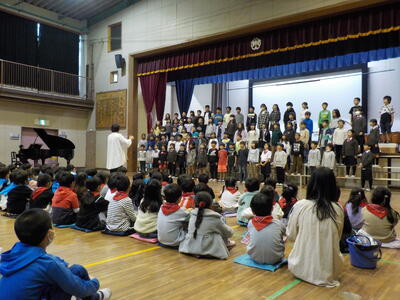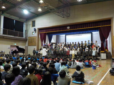 全校児童が体育館にそろって行う発表会は4年ぶり。オンラインの映像ではなく、目の前で歌や演奏を聴くことができました。どの学年も日ごろの頑張っている姿が伝わってくる素晴らしい発表でした。