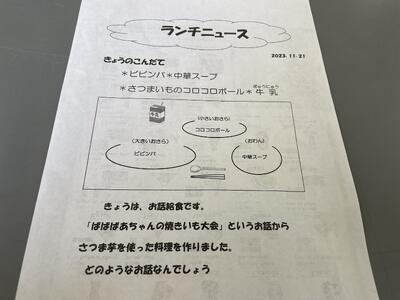 図書委員会がお昼の放送で読み聞かせをしました。さつまいものコロコロボール、おいしかったです。