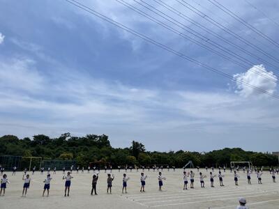 隊形移動の学習をしました。みんなの動きを揃えられるように、周りを意識して頑張っていました。