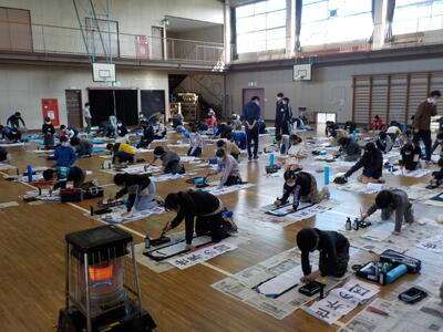 今週から3~6年生は、体育館を使って書初めの練習を行っています。今日は、5年生が実施しました。1月には、書初め大会を行い、1月24日~2月1日、廊下に展示する予定です。