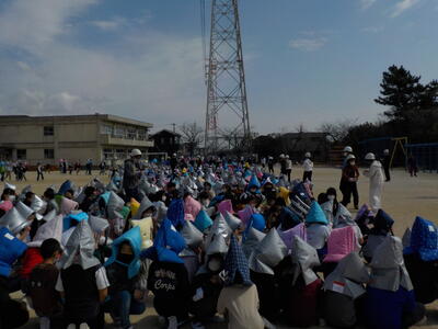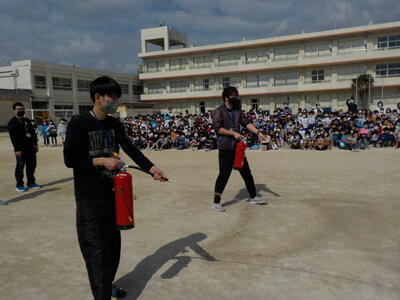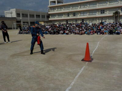 今日は市川市の「防災教育の日」です。12年前の東日本大震災を忘れないように定められました。南新浜小では消防署の方にご協力いただき、避難訓練を行いました。避難の仕方と先生方による消火器の使い方について確認をしました。
