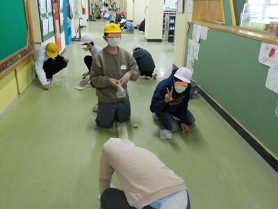 2日後に卒業式を迎える6年生が、廊下の床みがき、トイレ掃除、草むしりの奉仕活動をしてくれました。とてもきれいになりました。ありがとうございます!