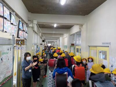 1~4年生は、今日で6年生とお別れです。明日は5年生が在校生代表として卒業式に参加します。下校時に、6年生は思い出の詰まった校舎をまわり、在校生は教室の前でお見送りをしました。