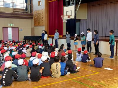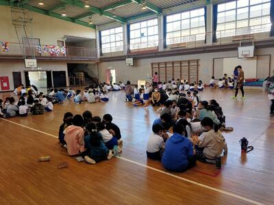 5月2日に予定している「全学年歩き遠足」に向けて、一緒に行動するペアの学年(1・6年、3・5年)の交流会です。グループの顔合わせや遠足の時にどのようなことをするか一緒に考えました。