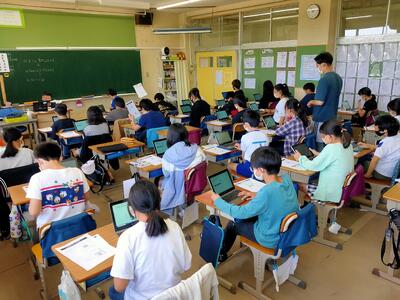 6年生は、先日18日に行われた全国学力状況調査の続きで、児童質問用紙にタブレットを使ってオンライン回答をしました。しっかり回答できたかな。