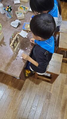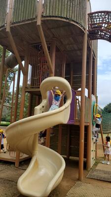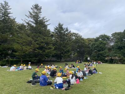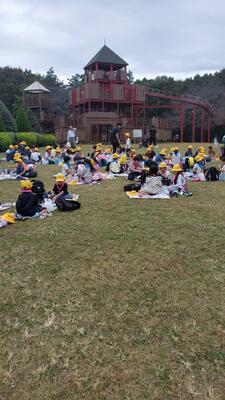 アンデルセン公園に校外学習に行きました。午前中は、写真立て作りをして、お弁当を食べました。午後は、遊具で遊びました。体をいっぱい動かして、元気に遊んでいました。