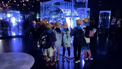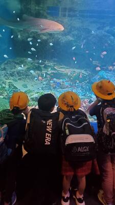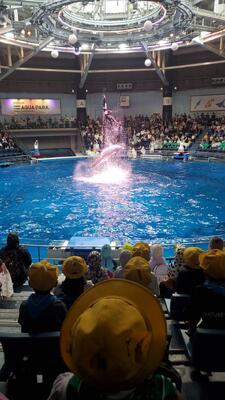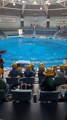 アクアパーク品川に校外学習に行きました。イルカショーを見るために、お弁当の時間を少し早めました。イルカショーでは、イルカのビッグジャンプにみんなびっくりしていました。その後、グループで館内を見学しました。さまざまな発見があり、子どもたちは目を輝かせながら見学していました。