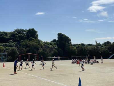 アメフトチーム オービックシーガルズの体験授業をしました。チームでの対戦の仕方を学び、試合をしました。講師の皆様、楽しい授業をしていただきありがとうございました。