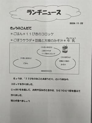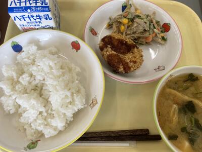 今週から読書月間がはじまりました。今日はお話給食でした。図書委員会と栄養士さんが協力して、コロッケを食べると食缶の下から手書きの絵が現れる楽しい仕掛けを用意してくださいました。お昼の放送で本の紹介もありました。みなさんぜひ読んでみてくださいね。
