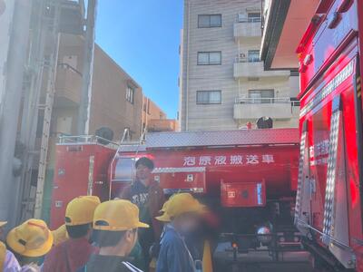 社会科の学習で、南消防署に見学に行きました。施設内や訓練の様子を見せていただき、素早く出動する仕組みや消防車の役割について学ぶことができました。今日は実際に出動する様子も見ることができました。消防署の皆さん、お忙しい中ありがとうございました。