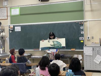読書月間の取組の一つとして、朝学習の時間に担任が他の学級で読み聞かせをする、先生シャッフル読み聞かせをしました。子ども達はどの先生が来るか心待ちにしていたようです。いつもとは違う雰囲気で、本を楽しむことができた時間でした。