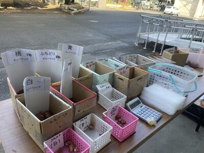 生活科で、球根のお買い物学習をしました。お店の方に学校に来ていただき、あらかじめ決めていた球根を一人ひとりがお金を出して買っていきます。「黄色のチューリップをください」など、欲しいものを伝えることができていました。最後にお金を払って、球根を受け取ると買い物が終わります。お店の皆さんありがとうございました。これから植えるのが楽しみですね。