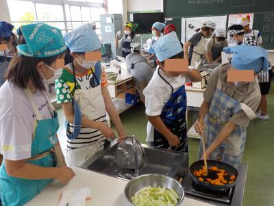 クラスによって実施する日が異なりますが、5年生は「カラフルゆで野菜サラダ」、6年生は「スクランブルエッグ&野菜炒め」などを作っています。