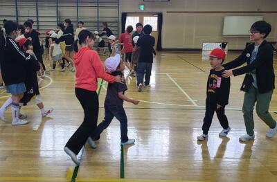 学級によっては、担任の先生たちも一緒に遊んでいます。