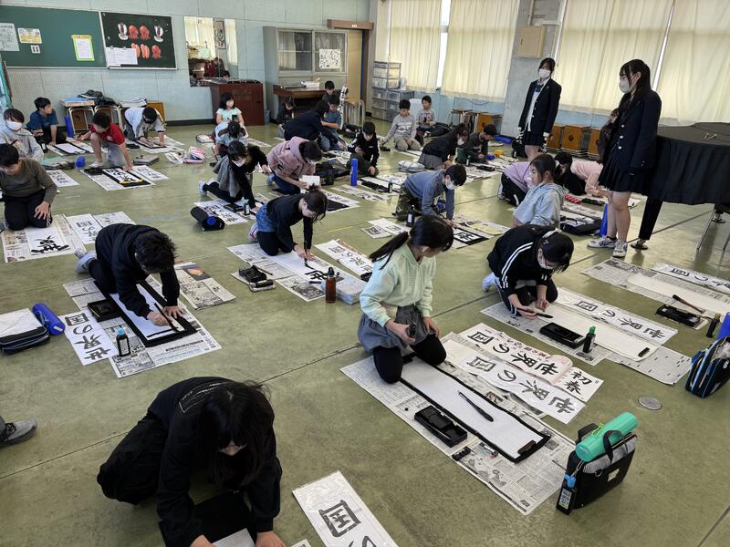 講師は、先週5年生を教えてくだった国分高校書道部の生徒さんたちです。