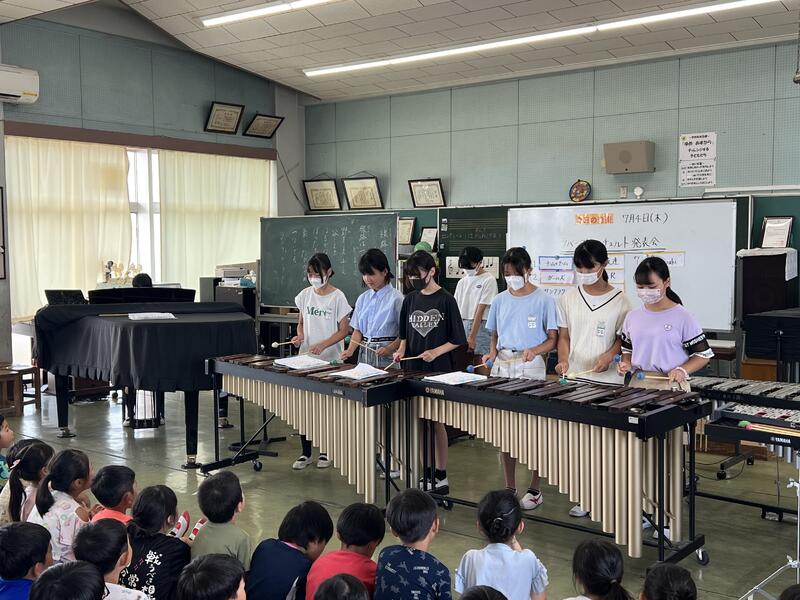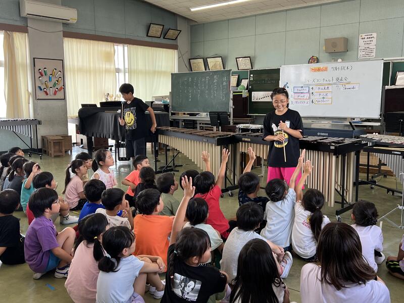 6年生は自分たちでグループを作り、自分たちで考えて、7つの楽器を自由に使って発表しました。見事なアレンジを加えたグループもありました。