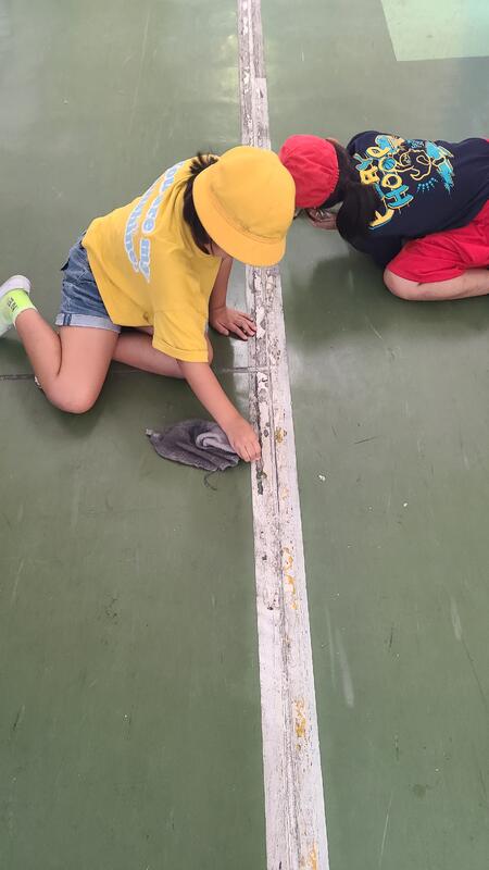 4年生は、廊下にある白線をクレンザーで磨いていました。白色が鮮やかに蘇りました。