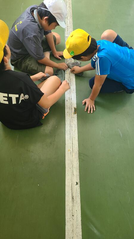 昼になるにつれ、暑さ指数が上がってしまうので、この日は雨ではないのに、屋内での活動でした。