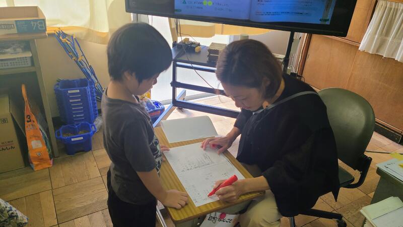 丸付けだけでなく、終わった子がいないうちは、机を回ってもらい教えてくださいました。