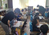 そこで、丸付けの補助として、曽谷小応援隊から5人のご参加をいただきました(1組に2人、2組に3人)。