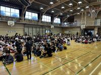 後期始業式が行われました。前期修了式はオンラインで行いましたが、今回は体育館に全員が集まりました。
