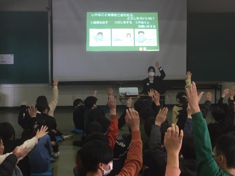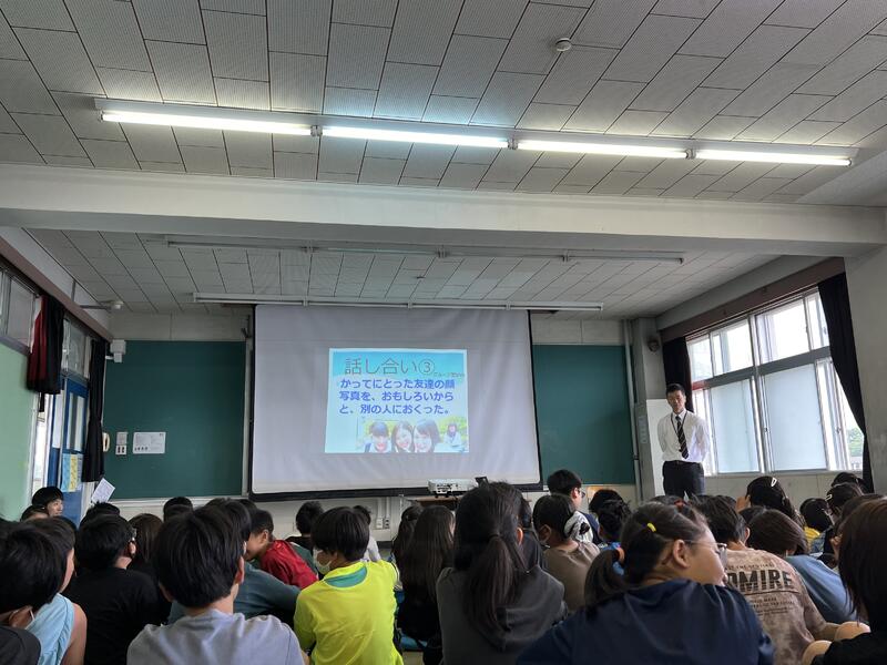 6年生を対象に、市川警察生活安全課の方々を講師としてお招きし、「ネットモラル」に関する授業を行っていただきました。