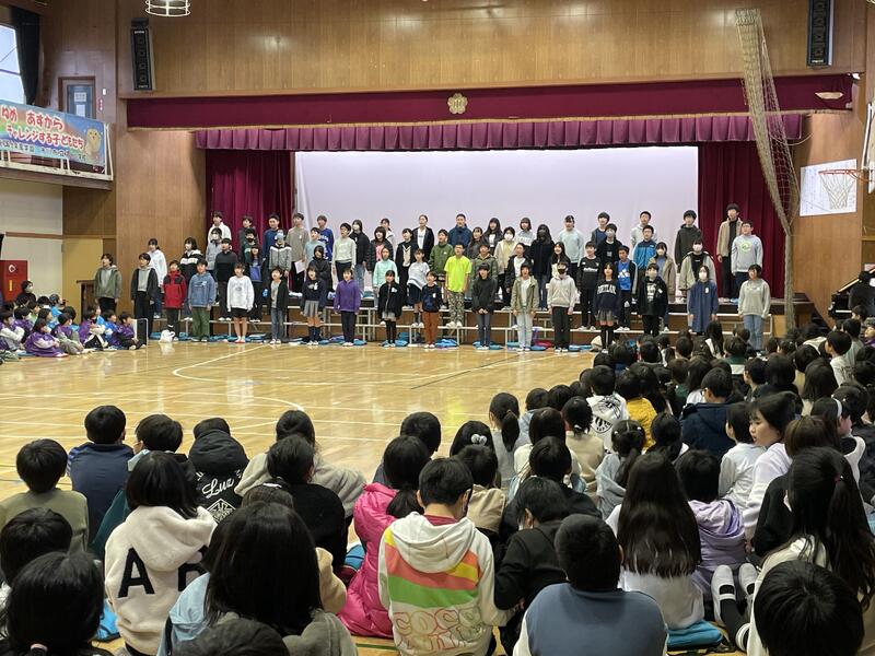 全校児童が集まって、卒業を祝う会が体育館で行われました。今年のテーマは、「ありがとう6年生!夢に向かってチャレンジしよう!」です。体育館では、1学年ずつ6年生の前で、また、6年生は在校生へ、心のこもった出し物を披露しました。感謝の気持ち「ありがとう」が溢れていて、曽谷っ子みんながうれしい気持ちになった1日でした。